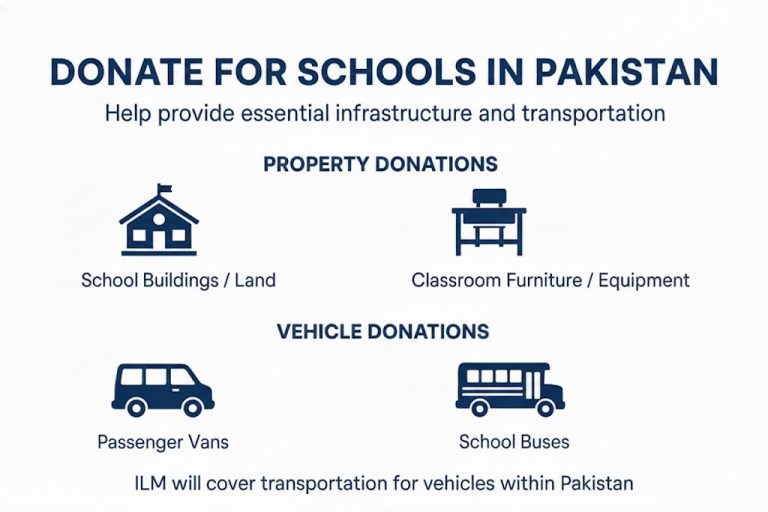 Our dedicated team can evaluate the vehicle, handle repairs, and use those to transport our children. Your contributions of property or vehicles enable ILM to reach more children and provide safe, accessible education across Pakistan.